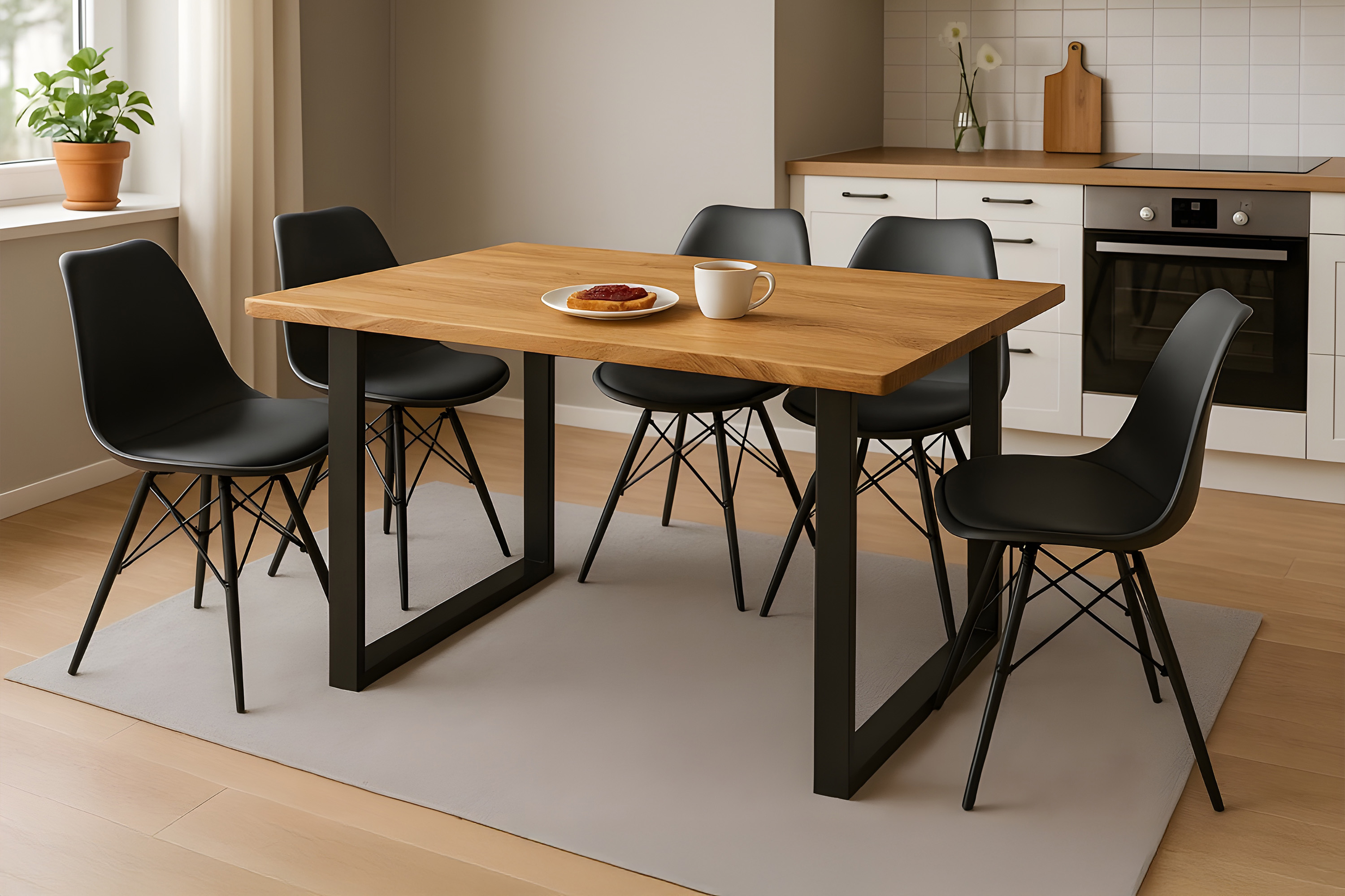 Esstisch Salvador, 140 x 80 cm, Eichenholz massiv, U-Gestell Schwarz, Baumkante