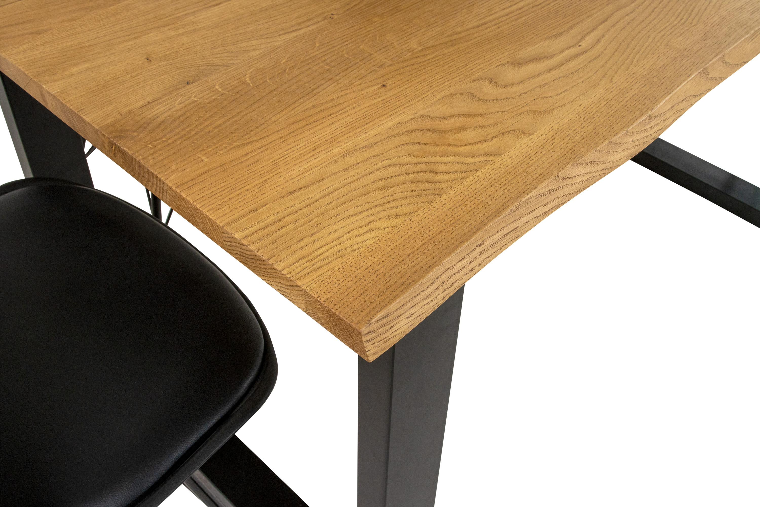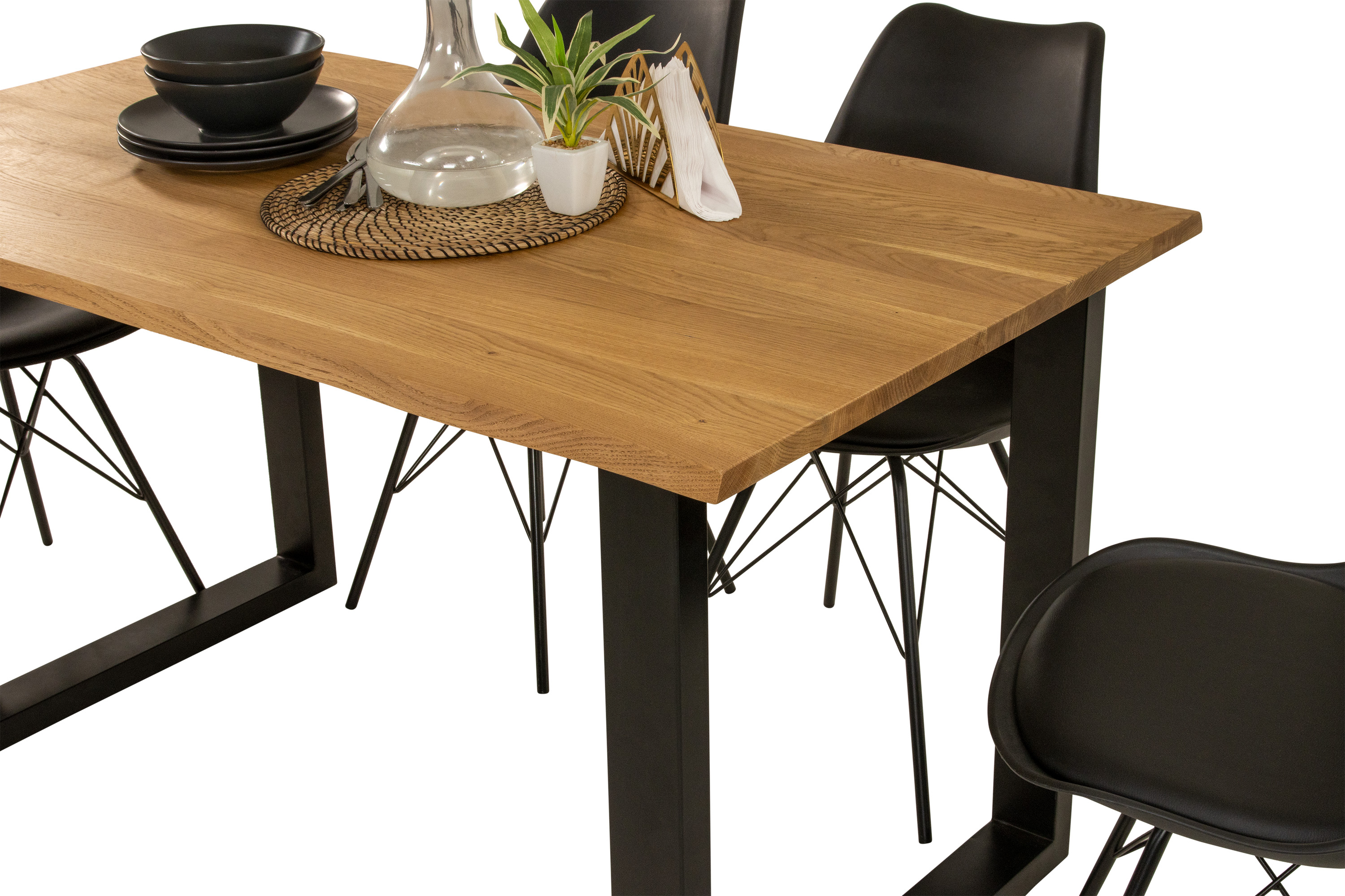 Esstisch Salvador, 180 x 90 cm, Eichenholz massiv, U-Gestell Schwarz, Baumkante