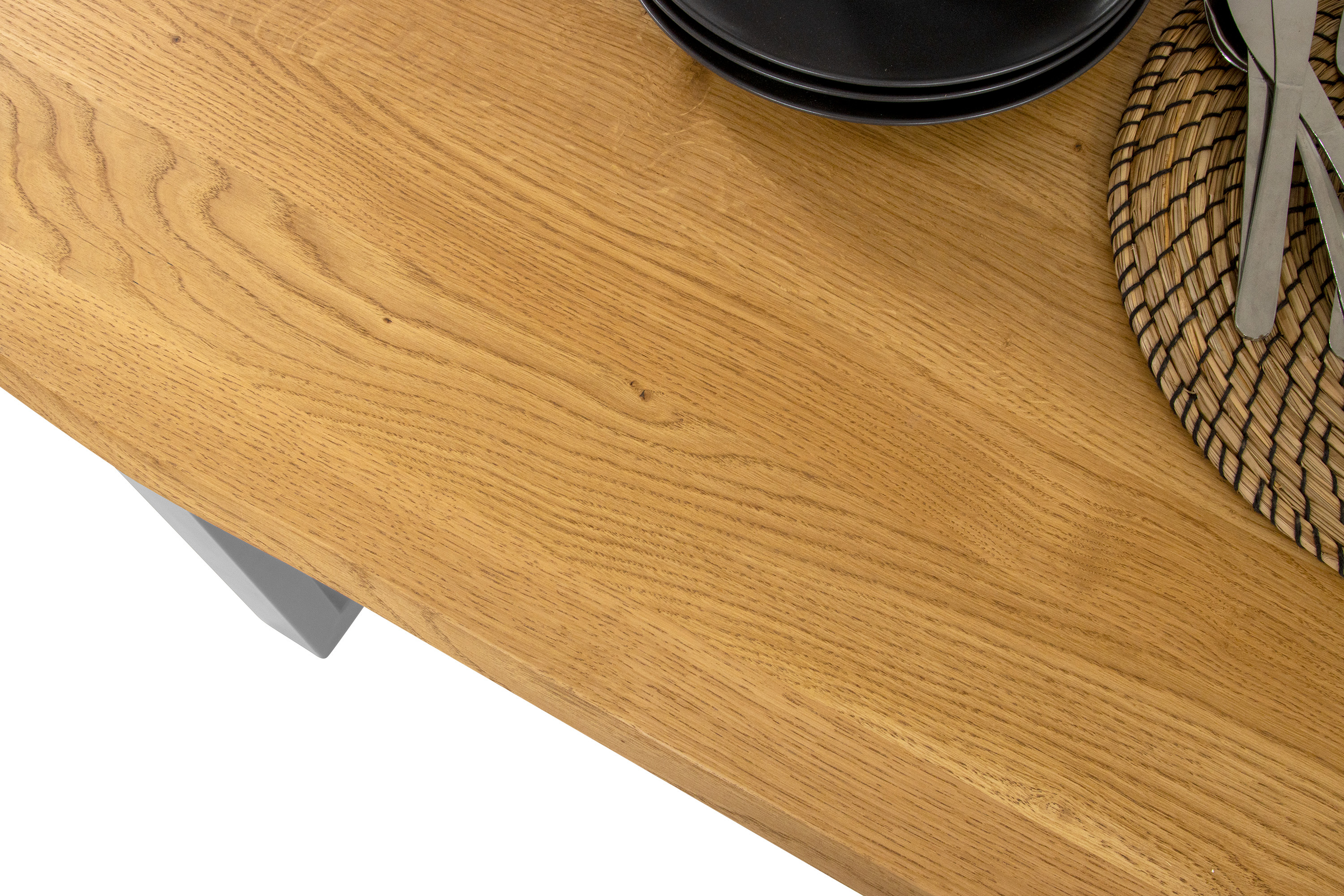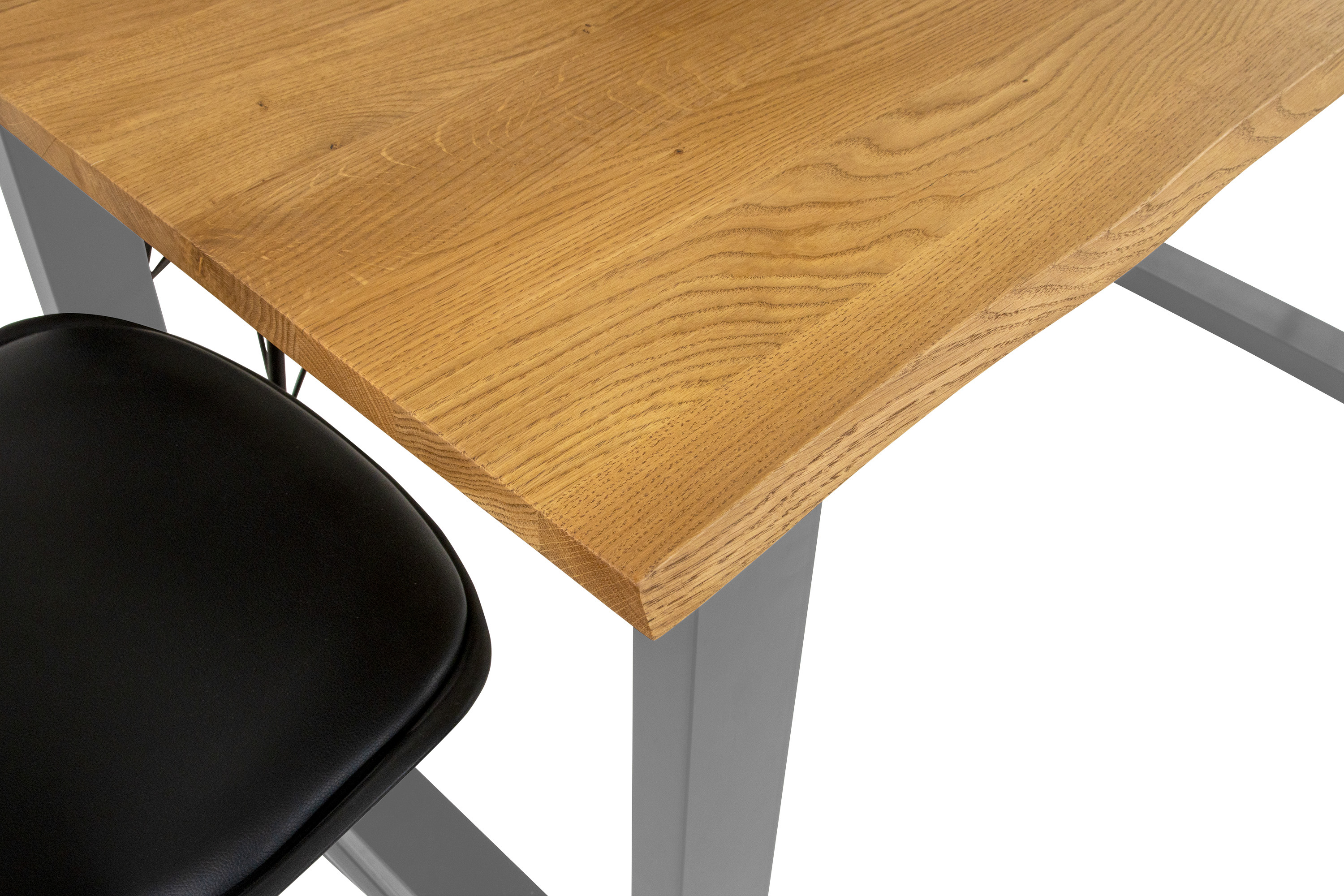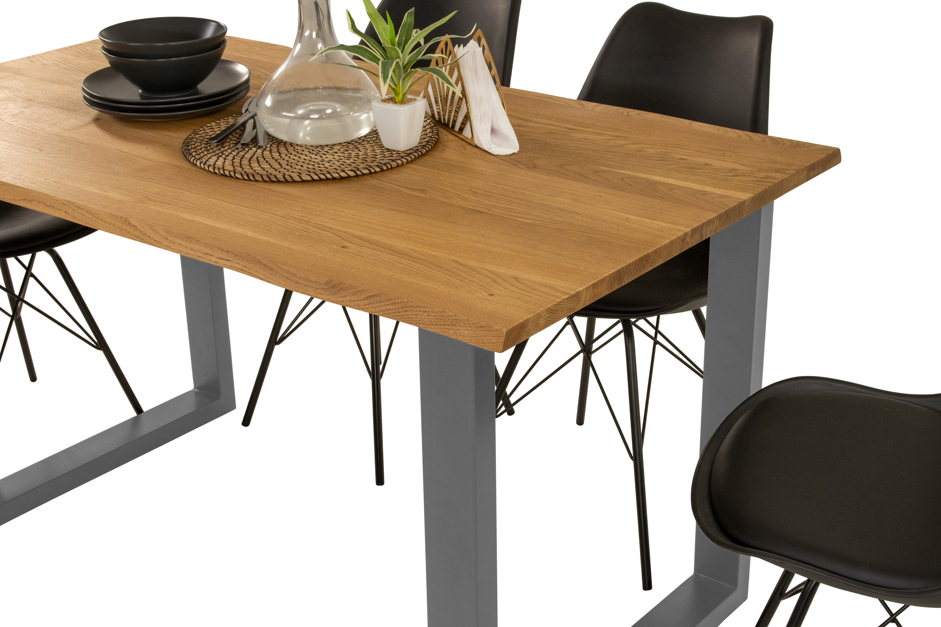 Esstisch Salvador, 180 x 90 cm, Eichenholz massiv, U-Gestell Silber, Baumkante