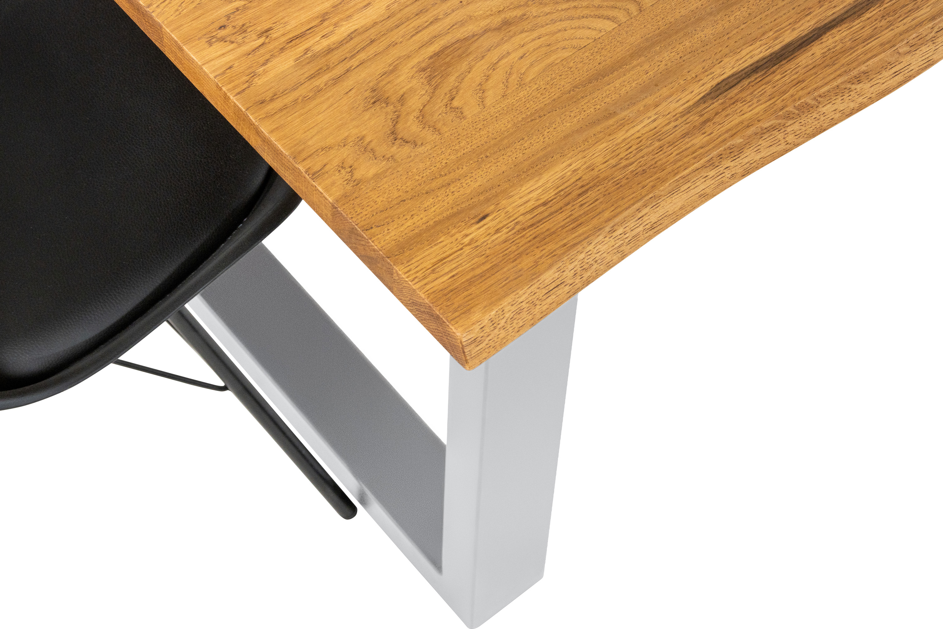 Esstisch Salvador, 220 x 100 cm, Eichenholz massiv, U-Gestell Silber, Baumkante