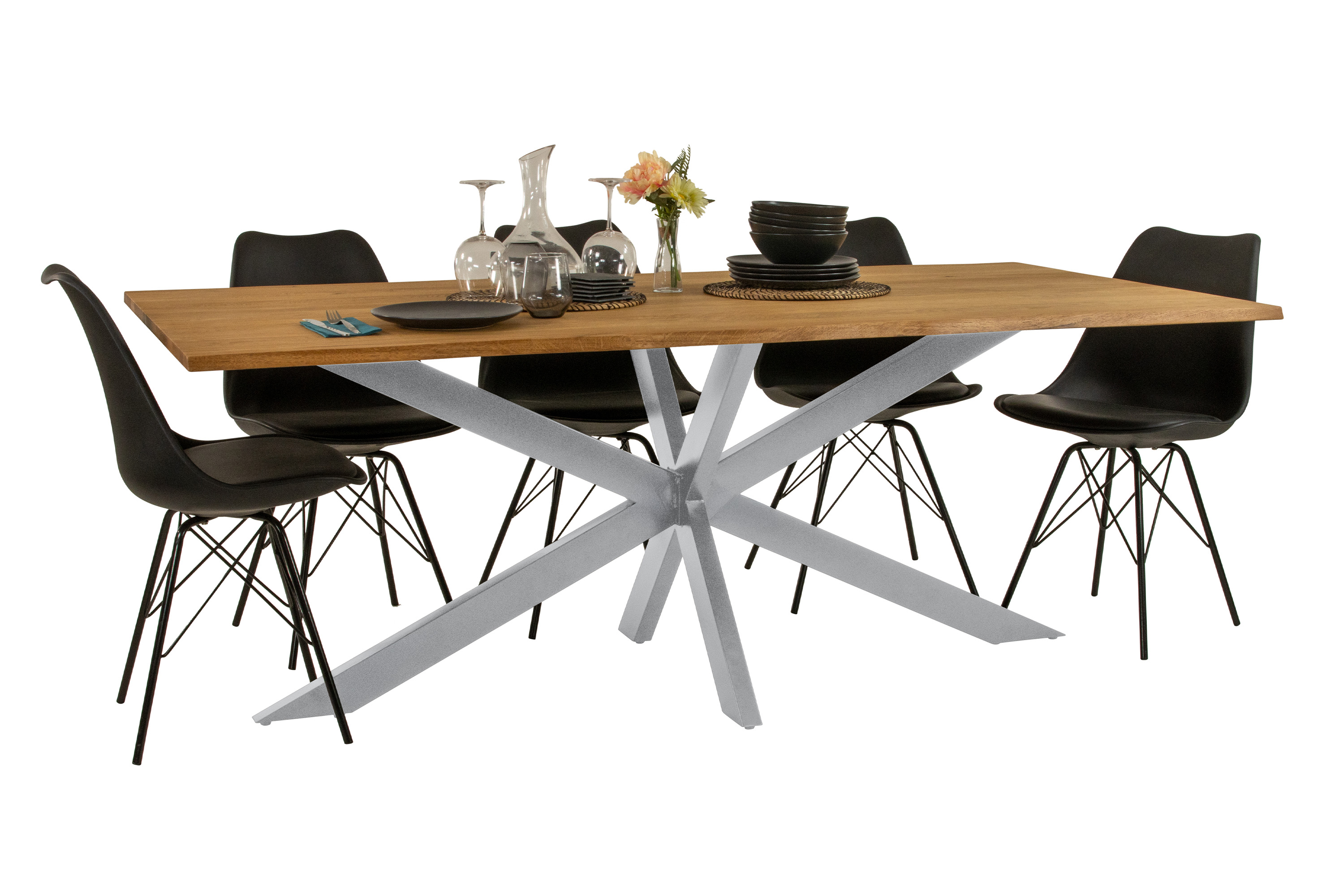 Esstisch Salvador, 240 x 100 cm, Eichenholz massiv, Spider-Gestell Silber, Baumkante