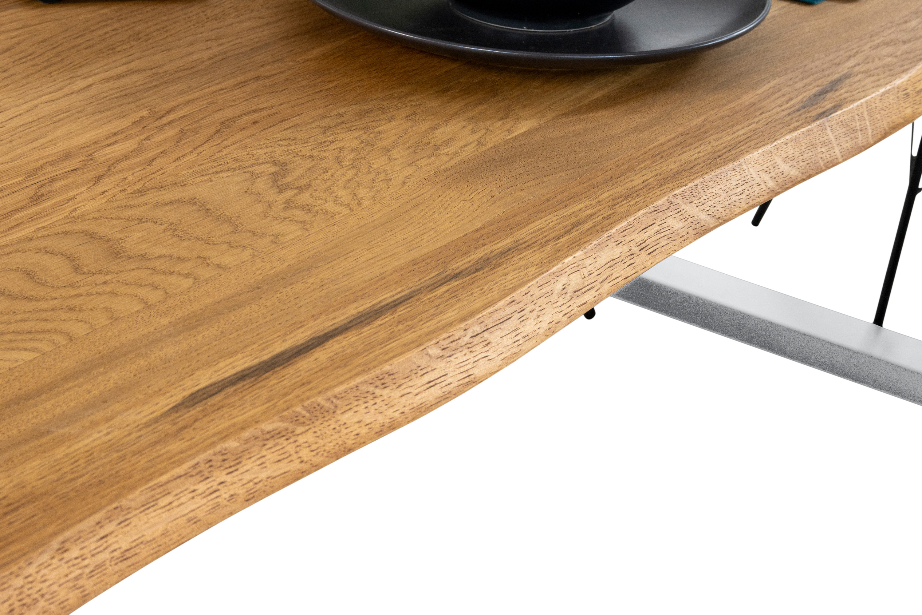 Esstisch Baumkante massiv Eiche geölt 240 x 100 cm U-Gestell silber SALVADOR