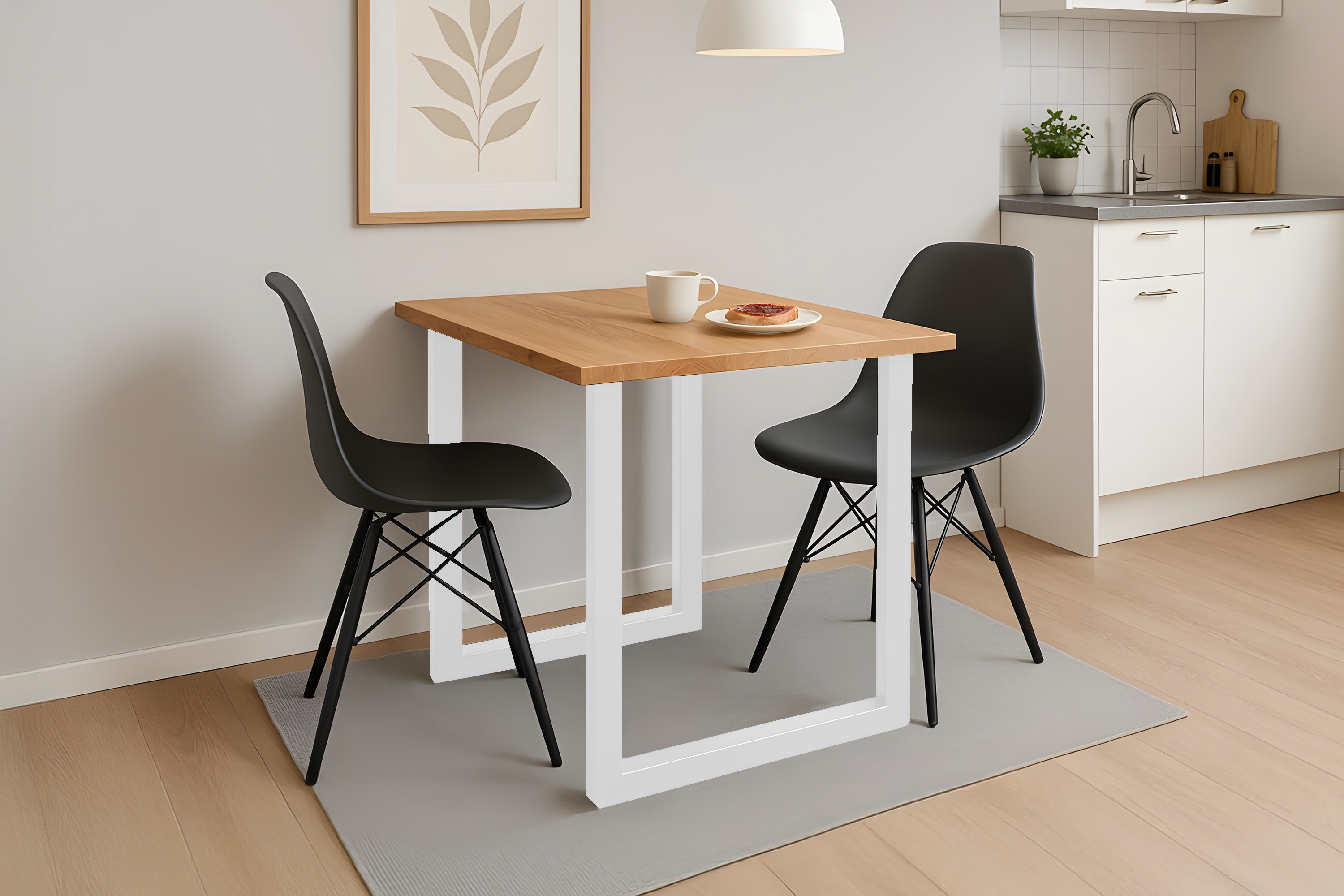 Esstisch Salvador, 80 x 80 cm, Eichenholz massiv, U-Gestell Weiß, Baumkante