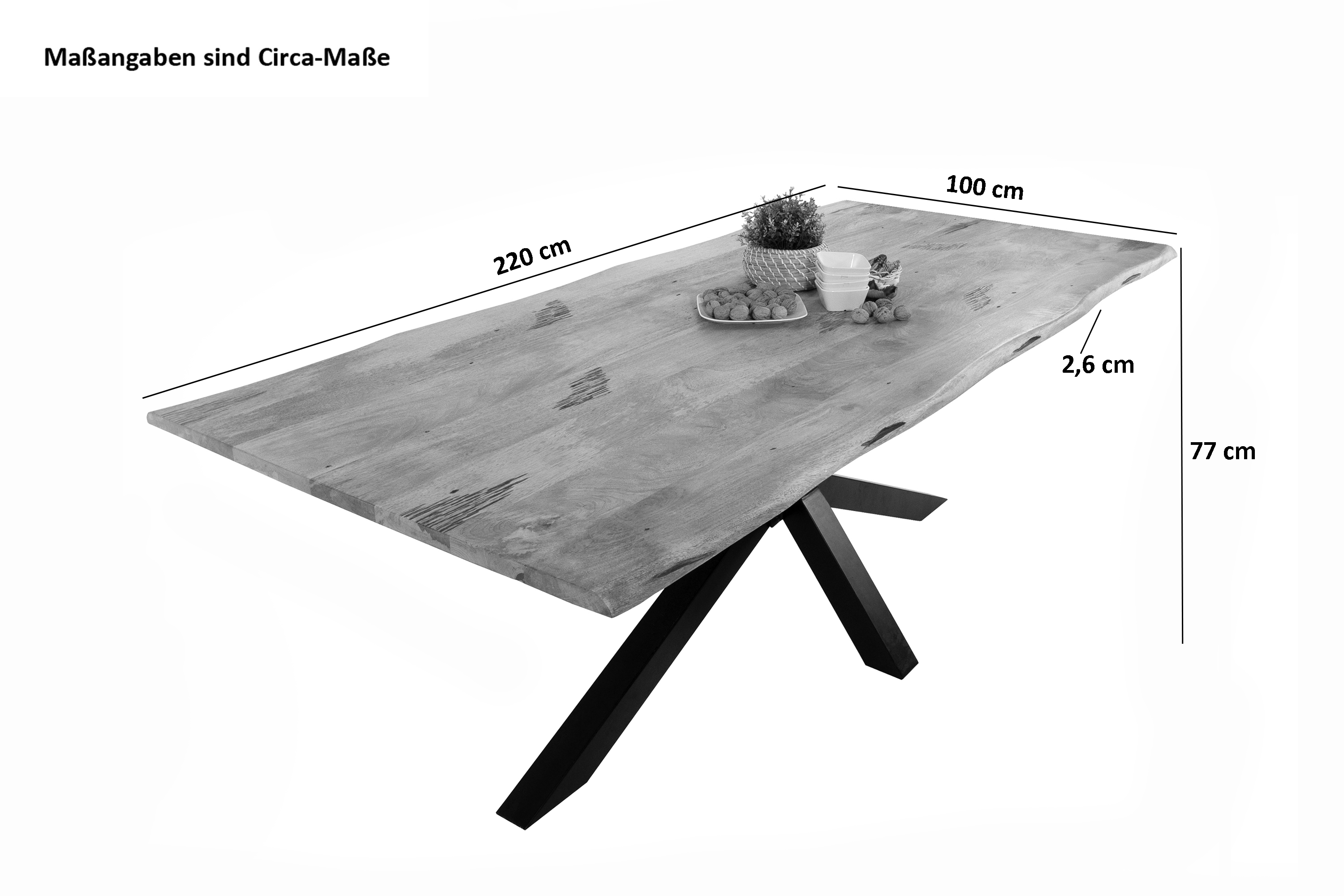 Produktinformationen "Esstisch Baumkante Massiv Mango naturfarben 220 x 100 schwarz Spider-Gestell Tiger"