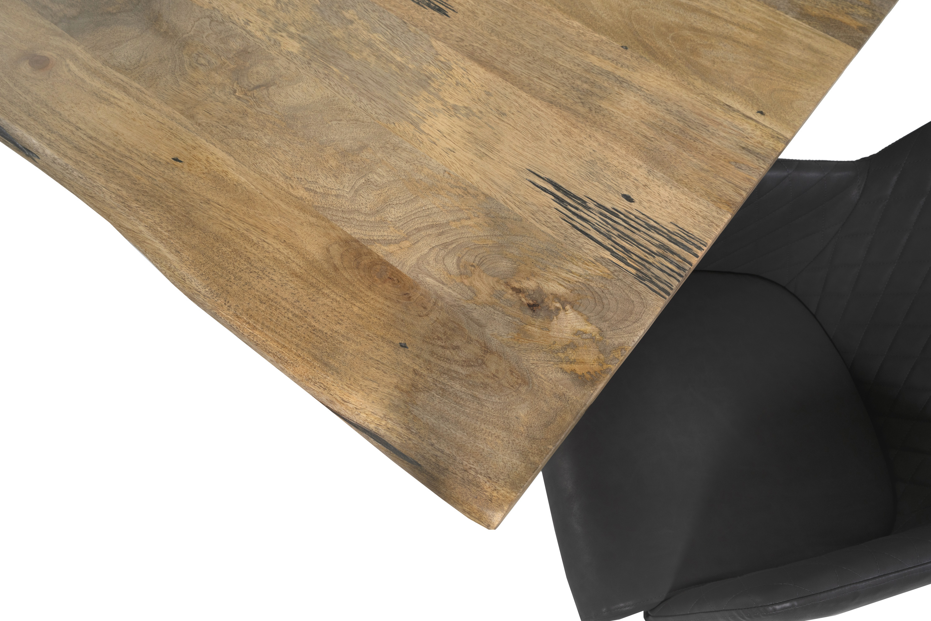Esstisch Tiger, 220 x 100 cm, Mangoholz massiv & naturfarben, echte Baumkante, Spider-Gestell aus Eisen Schwarz lackiert, Vintage-Optik