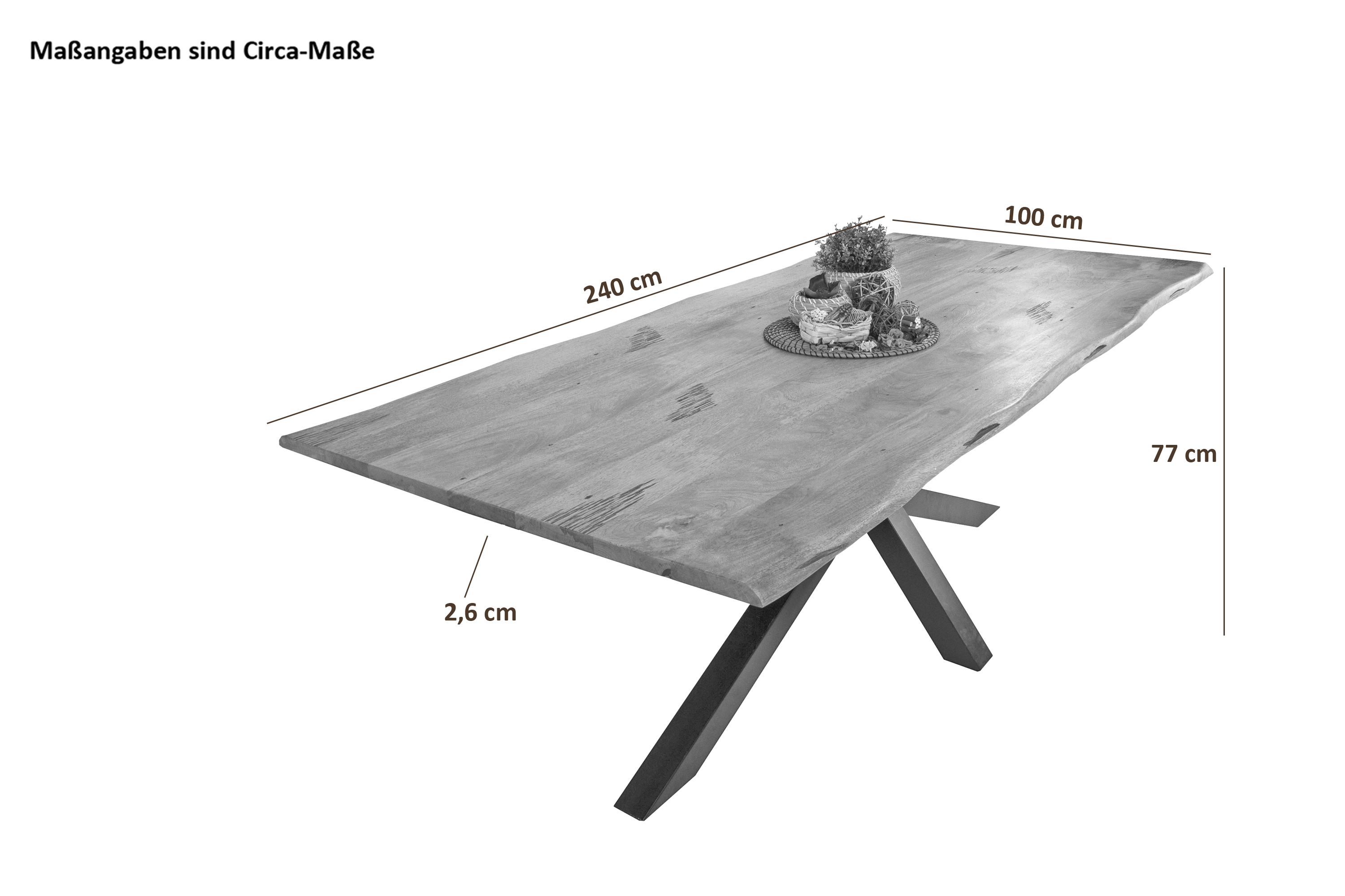 Esstisch Baumkante Massiv Mango naturfarben 240 x 100 schwarz Spider-Gestell Tiger