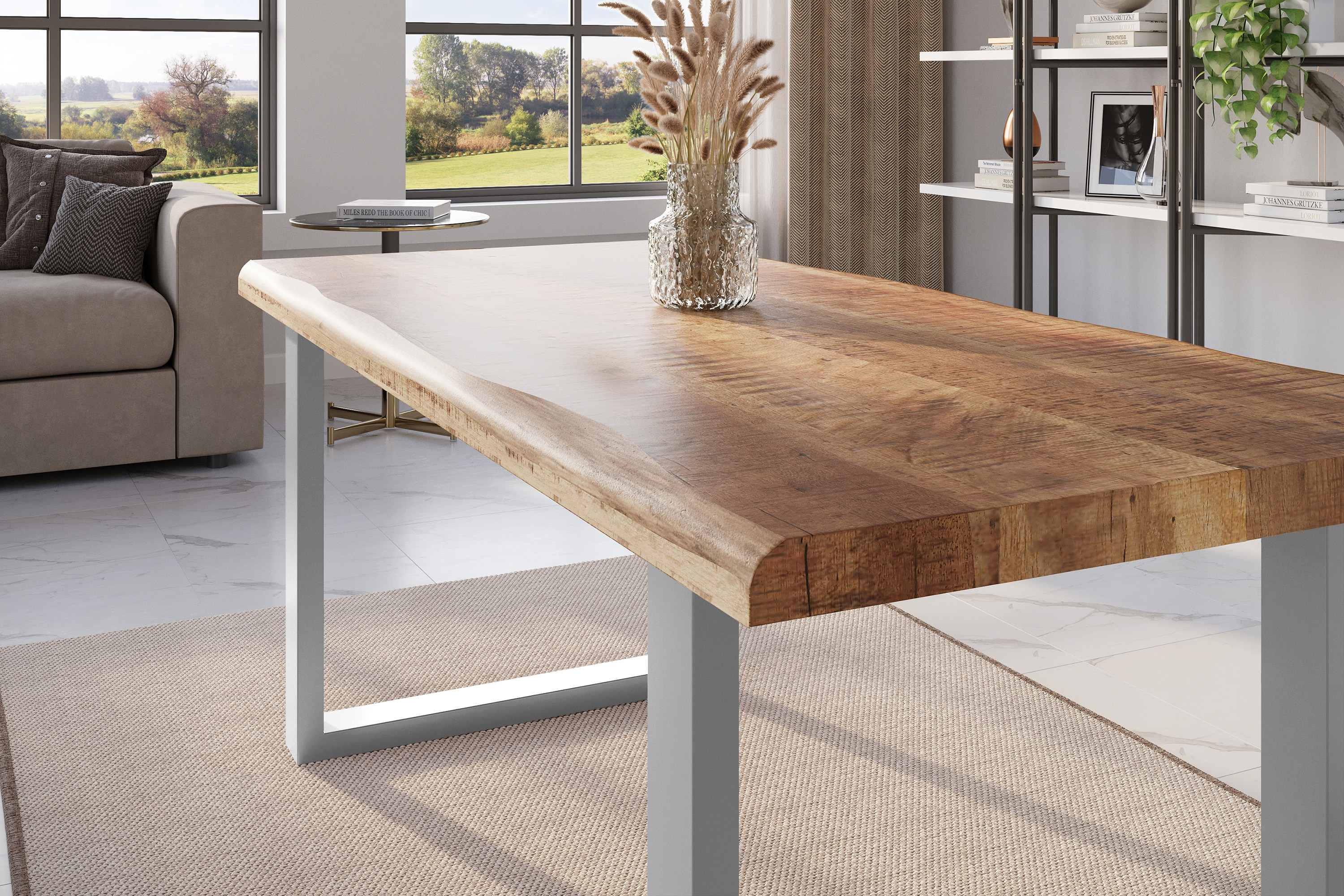 Esstisch Baumkante massiv Mango rough 180 x 90 U-Gestell weiß ATLAS