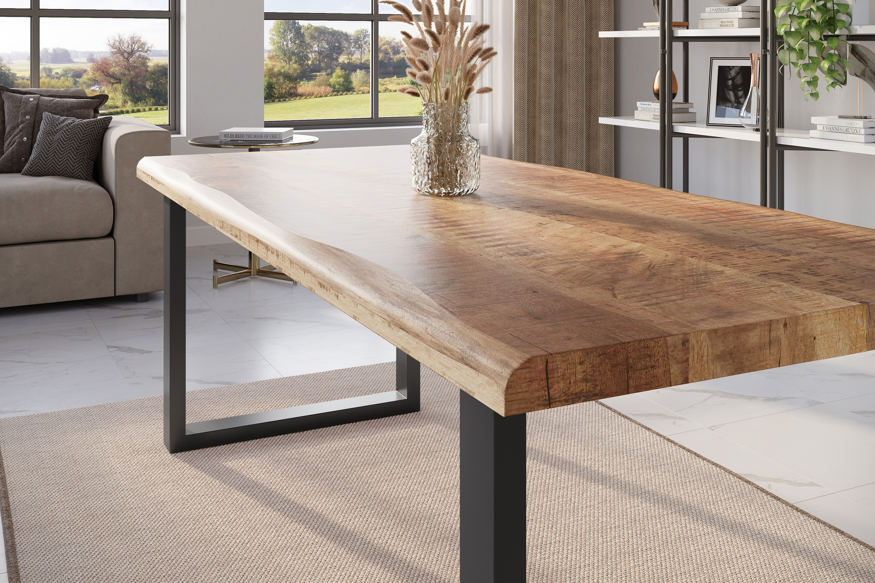 Esstisch Baumkante massiv Mango rough 220 x 100 U-Gestell schwarz ATLAS