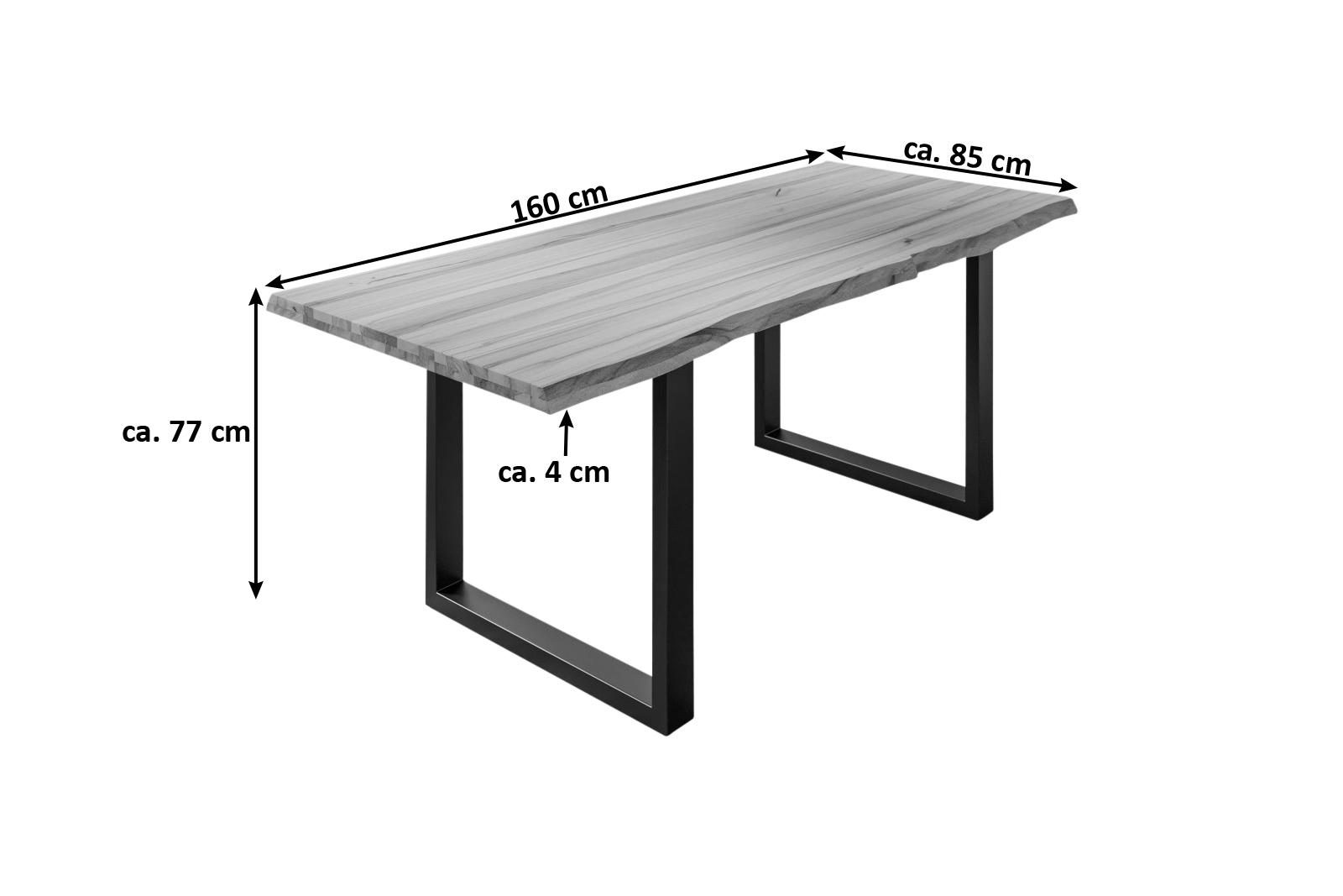 Produktinformationen "Esstisch Baumkante Massiv Wildbuche 160 x 85 mattschwarz U-Gestell ROMAN"