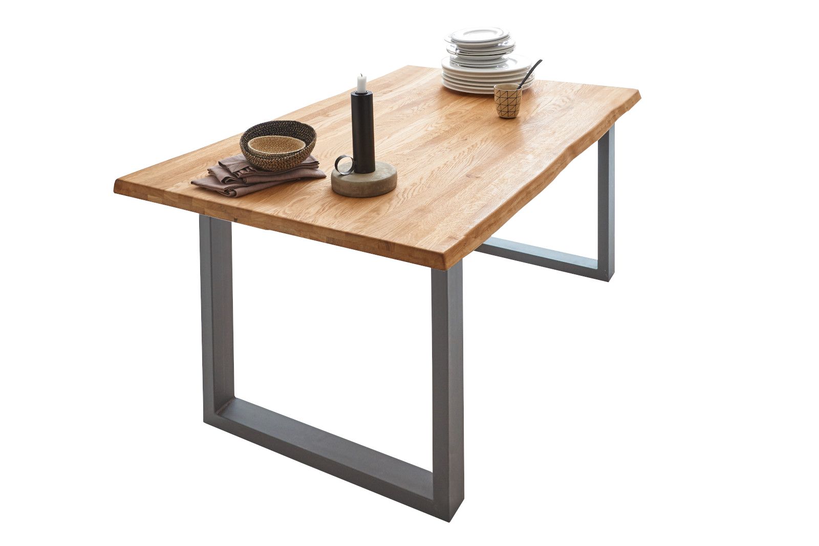 - Ausführung: Massivholz Wildeiche, Tischbeine silber, mit echter Baumkante