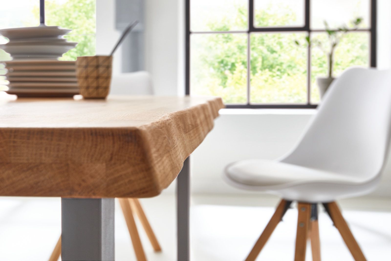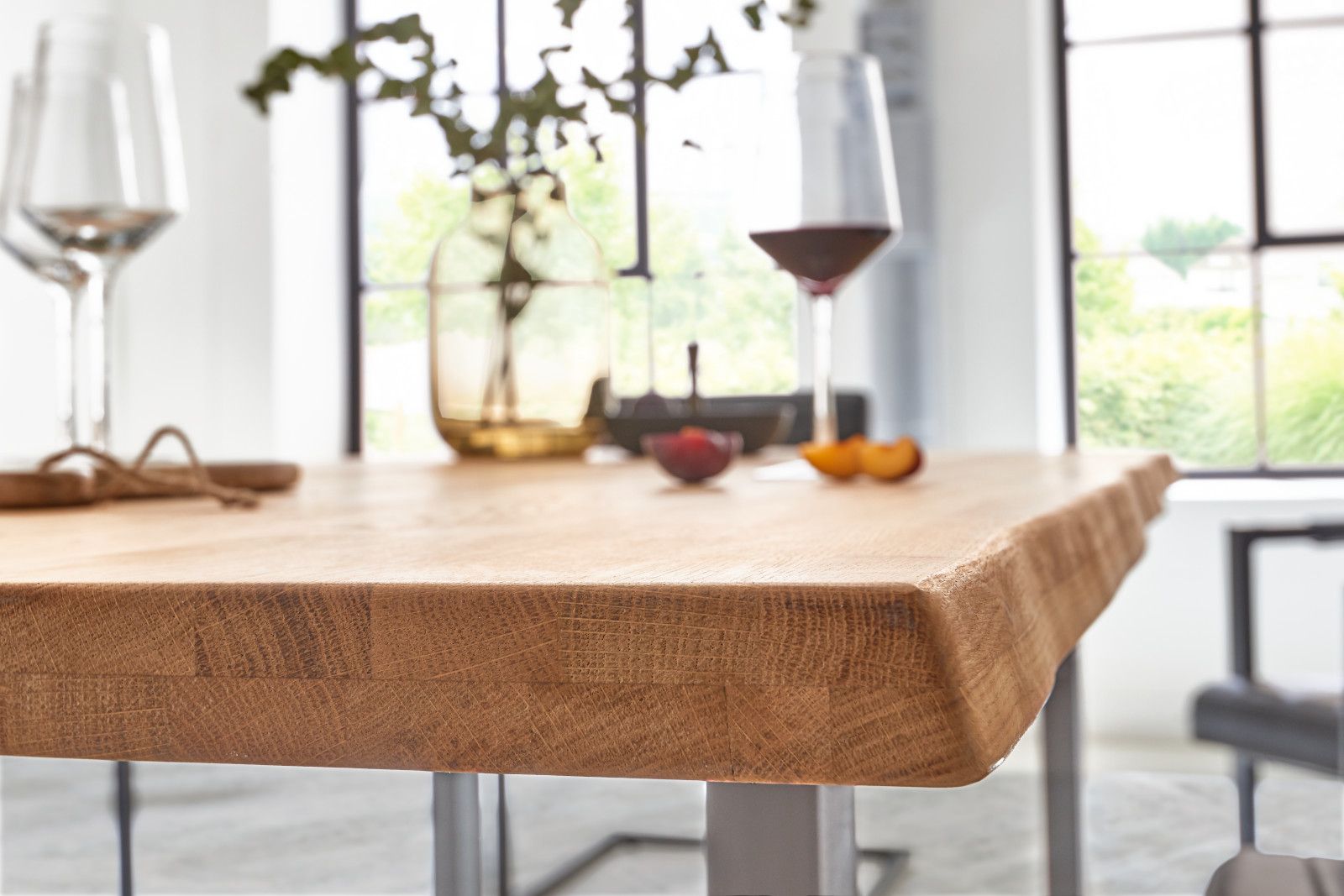 - Ausführung: Massivholz Wildeiche, Tischbeine silber, mit echter Baumkante