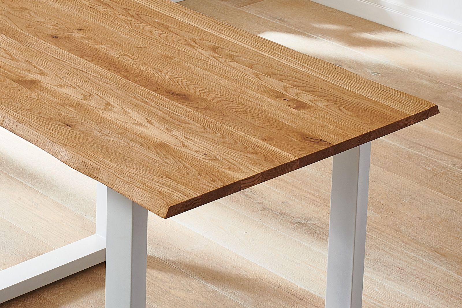 - Ausführung: Massivholz Wildeiche, Tischbeine weiß