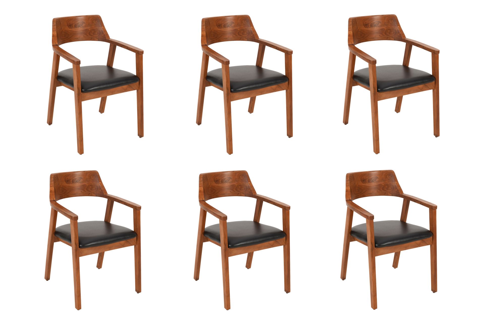 Esszimmerstuhl massive Akazie natur Sitz Echtleder schwarz ANGEL (6er-Set)