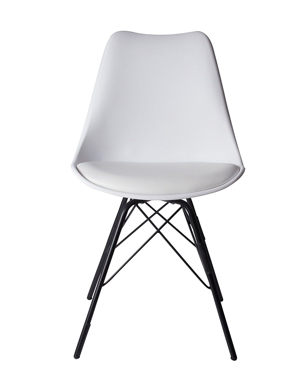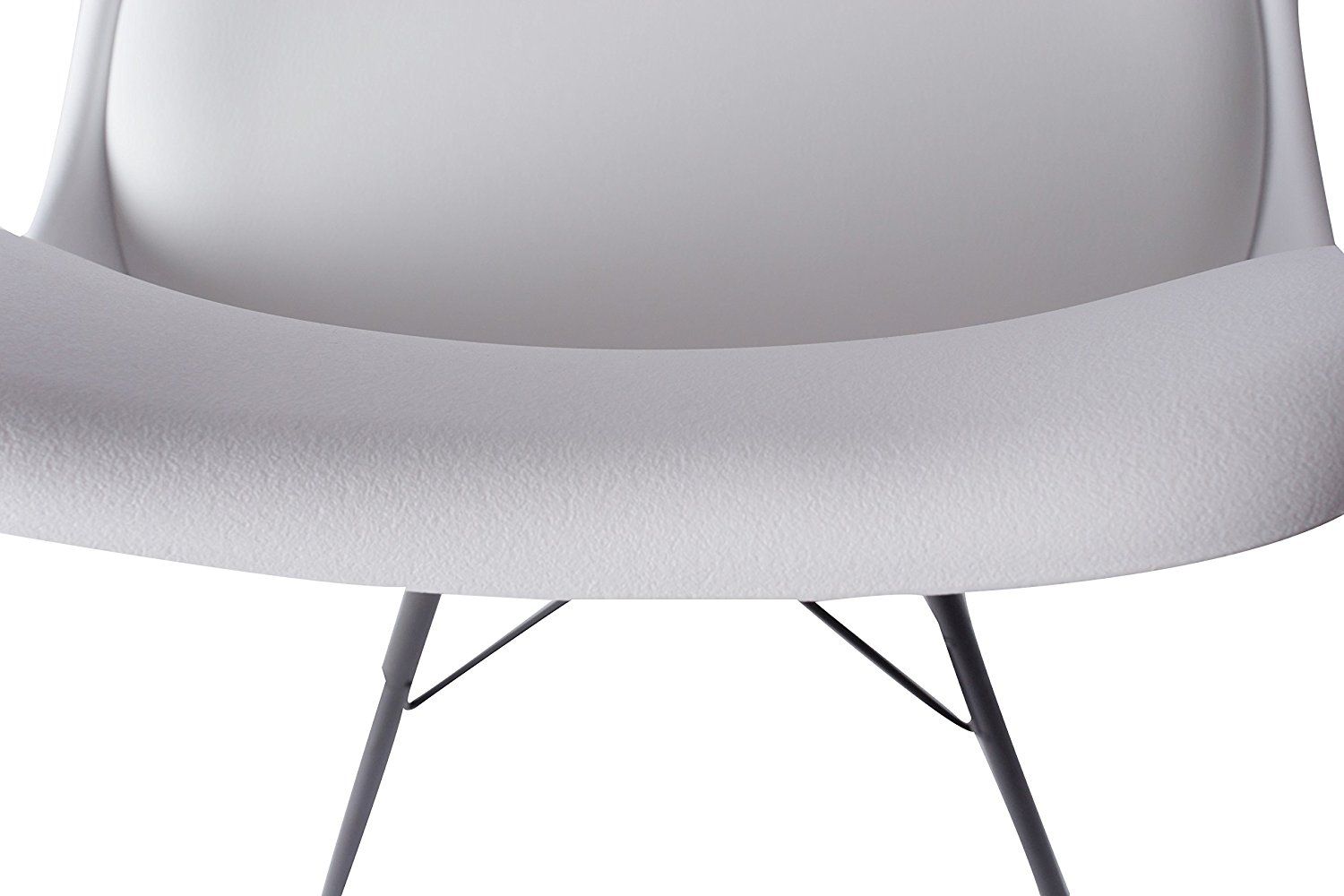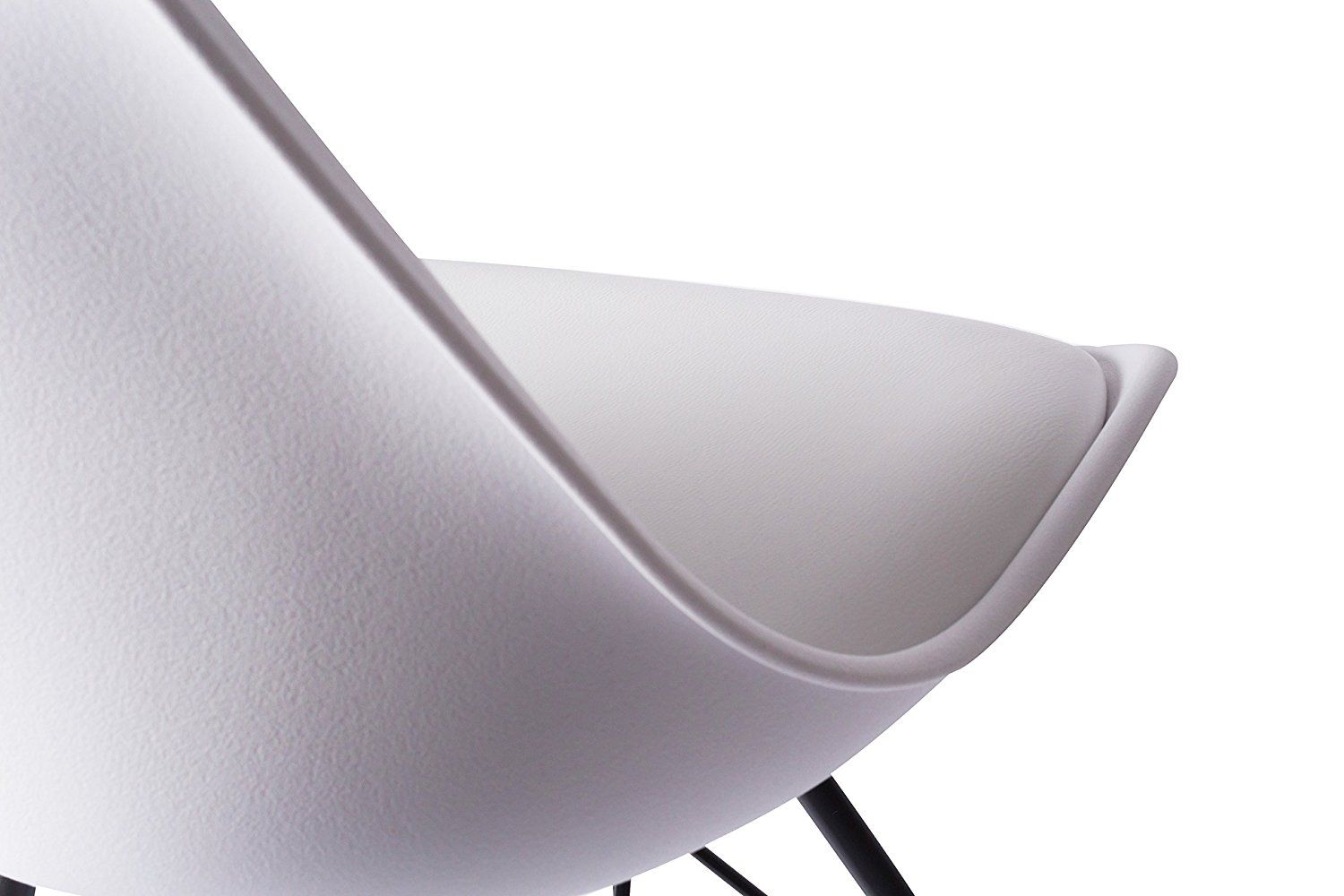Die Sitzschale besteht aus robustem Kunststoff in weißer Optik und überzeugt durch ihre zeitlose Eleganz. Dank der ergonomischen Form bietet sie einen hohen Sitzkomfort und lädt zum Verweilen ein. Das integrierte Sitzkissen in weißer Lederoptik sorgt für zusätzliche Bequemlichkeit und harmoniert perfekt mit dem dezenten, modernen Stil des Stuhls.