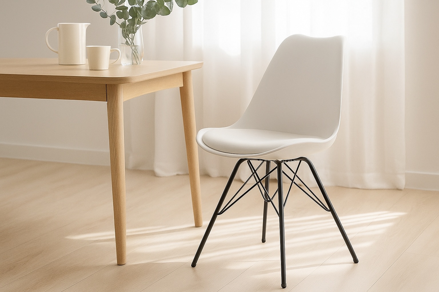 Der Schalenstuhl LEKUES in elegantem Weiß verbindet modernes, skandinavisch inspiriertes Design mit funktionellem Komfort. Sein schlichtes Erscheinungsbild, die klaren Linien und die hochwertige Verarbeitung machen ihn zu einem vielseitigen Möbelstück – ideal für Esszimmer, Büro oder Küche.
