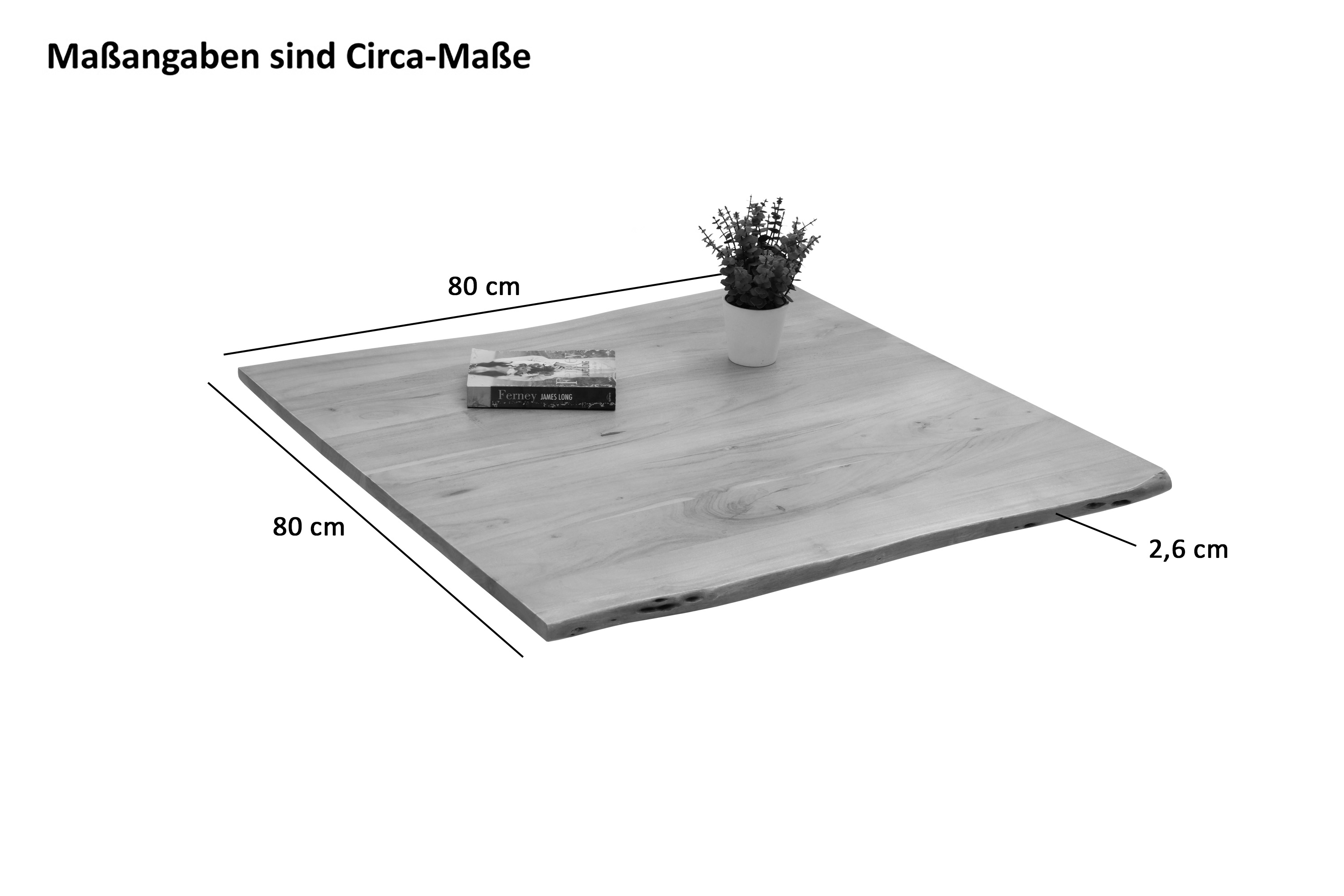 Tischplatte Noah, stilvolle Baumkanten-Platte 80 x 80 cm, Massivholz Akazie, eichefarben
